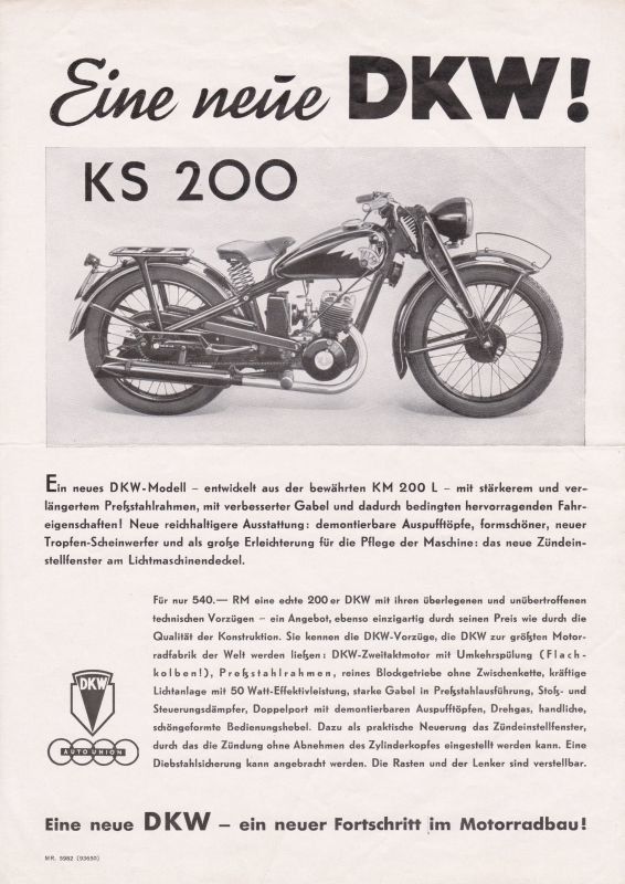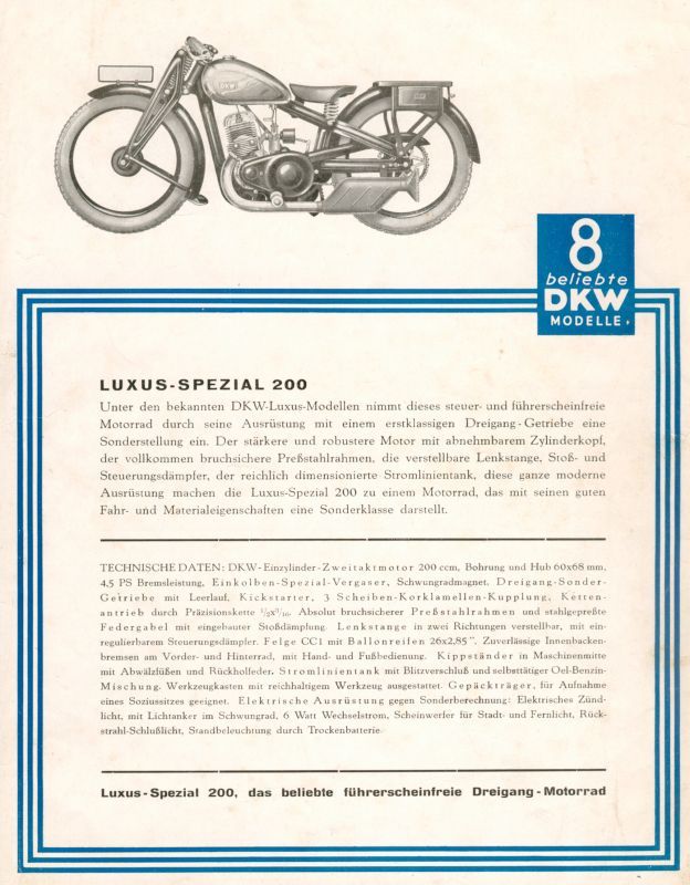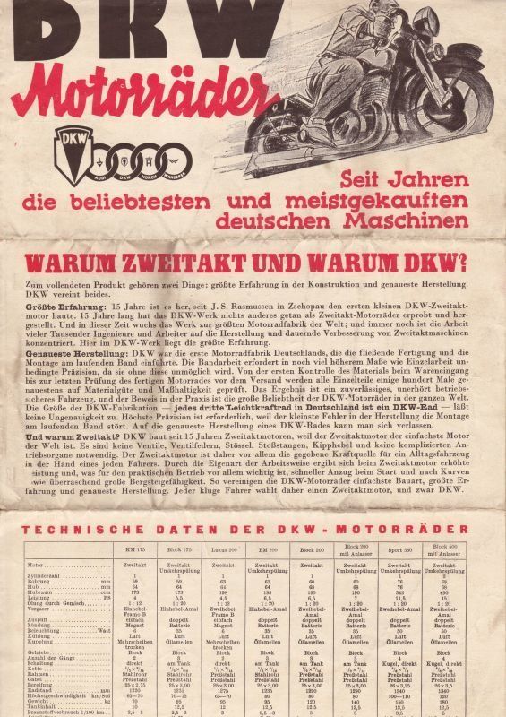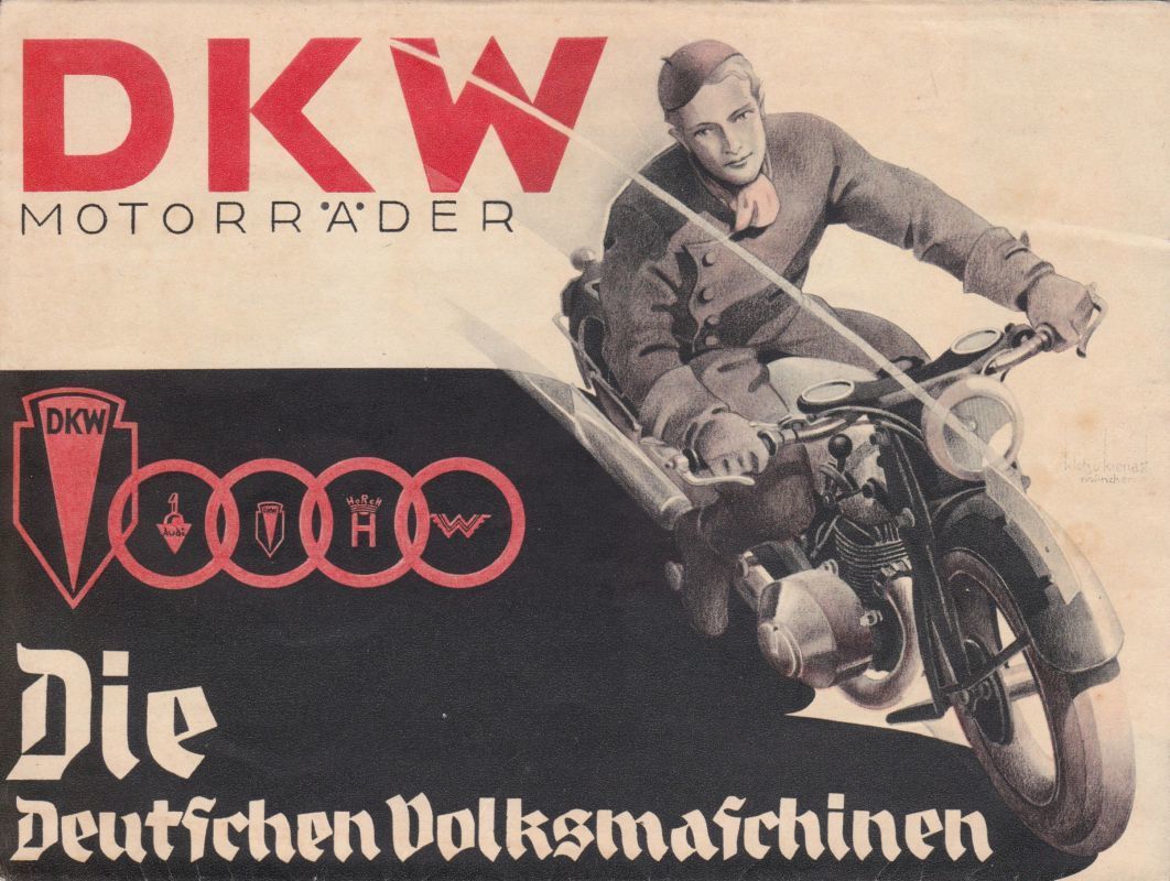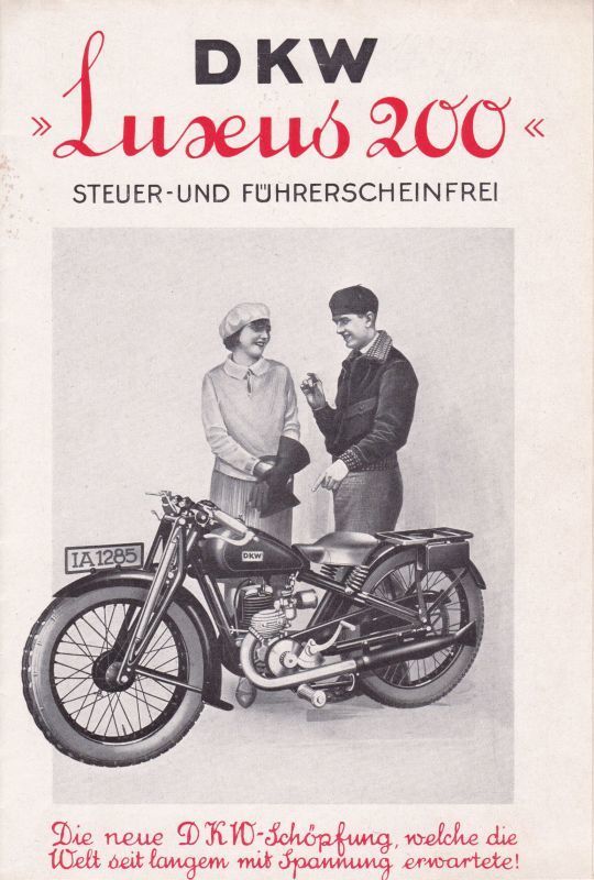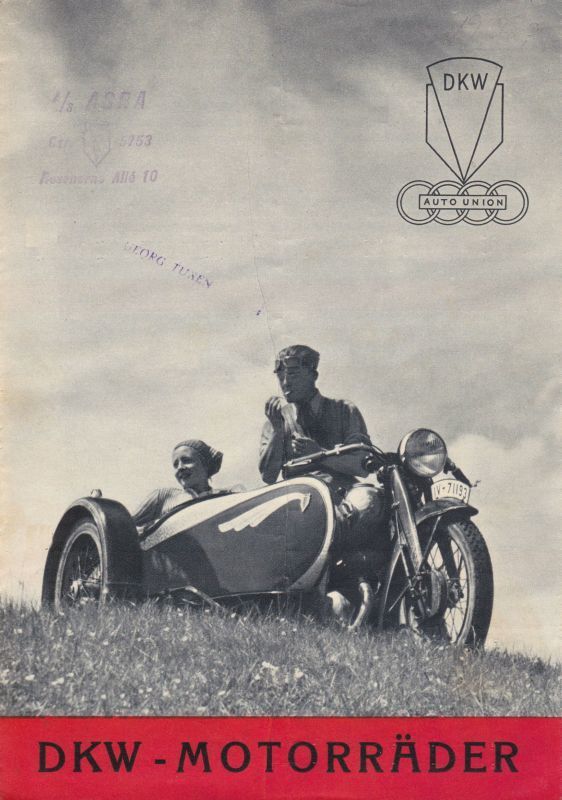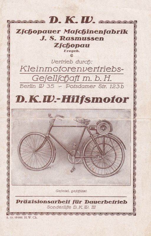 DKW Fahrrad, 14x14 cm, 6 Seiten, aus www. DGW wegen Rechtsstreit mit den deutschen Kabel-Werken zwischen 1923 und 1927. Letztlich einigte man sich, denn die Kabelwerke wollten ihr Produkt, die DEKA-Reifen, an Rasmussen verkaufen.