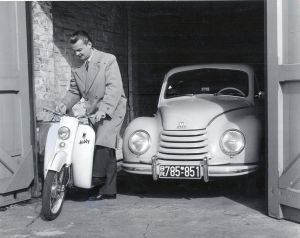 Im Dezember 2011 habe ich nun doch Bilder vom Post-Hobby gefunden. Zweifellos handelt es sich hier um einen Prototyp, weitere Exemplare sind nicht bekannt. Die Bilder wurden im August 1955 aufgenommen und befinden sich im Archiv von AUDI Tradition. Ganz links, im Hintergrund, DKW Schnelllaster für die Post.